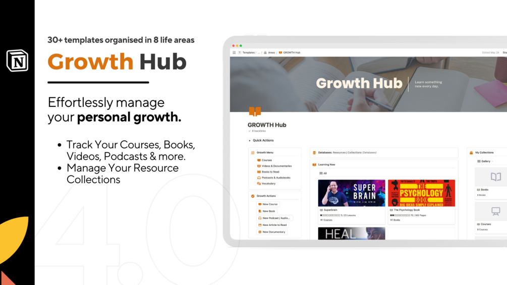- Advanced learning dashboard with courses/books/podcasts, etc.