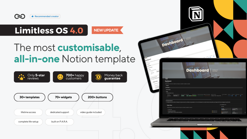 Limitless OS is the Ultimate, All-In-One Notion Template, the ONLY template YOU'll EVER NEED. With One Purchase, you'll get everything that you may need to build your dream Notion Setup.